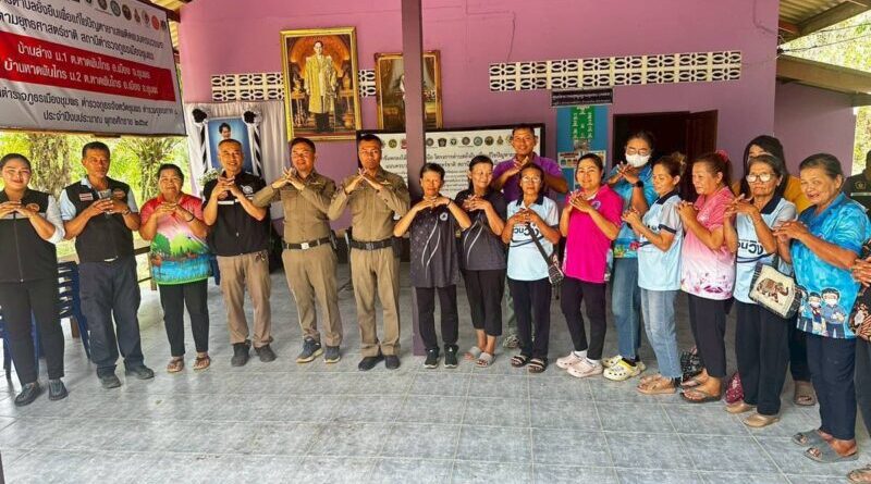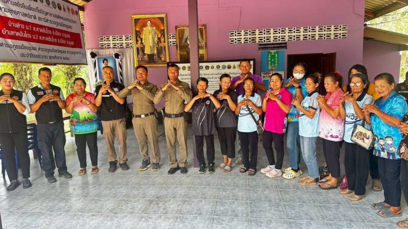 พ.ต.ท.สุรศักดิ์ พนัสนาชี รอง ผกก.ป.สภ.เมืองชุมพร ,ว่าที่ พ.ต.ท.ประคอง แก้วประสม สวป.(ชส.)ฯ,ร.ต.อ.ฐปนนท์ แดงสกล รอง สวป.ฯ , นางวันเพ็ญ เลขพลการ ผอ.รพ.สต.หาดพันไกร, นายบุญนำ จันทรประนต นายก ฯ อบต.หาดพันไกร, ส.อบต.ม.2 ต.หาดพันไกร/แพทย์ รพ.แพทย์แผนไทยประยุกต์ พร้อมด้วย ชุดปฏิบัติการตำบลยั่งยืน ,ชุด ชมส.ฯ และ สายตรวจตำบลหาดพันไกร,สายตรวจตำบลบางลึก ร่วมกับ นายศรัญญู สุดดวง ผญบ ม.1 ต.หาดพันไกร ฯ , ผช.ผญบ.ม.1, นายชานุรัตน์ ฤทธิเกษร ผญบ.ม.2 ,ผช.ผญบ.ม.2 , ประธาน ส.อสม.รพ.สต.หาดพันไกรและ อสม.ม.1,2 ต.หาดพันไกร ,ประธานคุ้มและคณะกรรมการคุ้ม ฯ ตามโครงการตำบลยั่งยืนเพื่อแก้ไขปัญหายาเสพติดตามยุทธศาสตร์ชาติ ประจำปีงบประมาณ 2569 ณ ศูนย์หมู่บ้าน ม.2 ต.หาดพันไกร อ.เมือง จ.ชุมพร