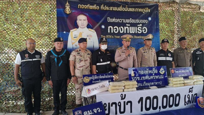 มุกดาหาร- หน่วยเรือรักษาความสงบเรียบร้อยตามลำแม่น้ำโขง กองทัพเรือ (นรข.) สนธิกำลังหน่วยความมั่นคงในพื้นที่ ตรวจยึดยาบ้าจำนวน 100,000 เม็ด ลักลอบนำเข้าจากประเทศเพื่อนบ้าน ส่วนผู้ต้องหาหลบหนีไปได้