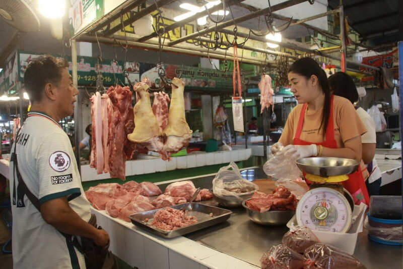 อ่างทอง – แม่ค้าหมูไก่สดครวญต้นทุนพุ่งขอภาครัฐช่วยตรึงราคาหน้าฟาร์มสู้รายใหญ่ต้องแบกต้นทุนเยอะมาก เนื่องจากไม่สามารถขึ้นราคาได้กะทันหัน ต่างจากรายใหญ่ที่ยังสามารถตรึงราคาไว้ได้