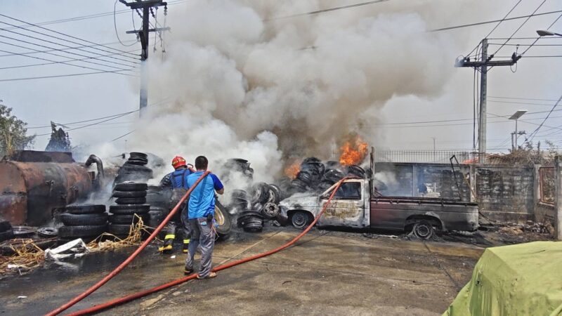 ปทุมธานี – ไฟไหม้ป่าหญ้า ลามติดกองยางและรถยนต์เสียหาย 2 คัน