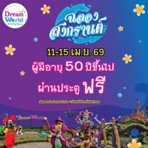 วันที่ 7 เมษายน 2569 สวนสนุกดรีมเวิลด์ ตำบลบึงยี่โถ อำเภอธัญบุรี จังหวัดปทุมธานี จัดโปรโมชั่นพิเศษต้อนรับเทศกาลสงกรานต์ ระหว่างวันที่ 11–15 เมษายน 2569 มอบสิทธิ์ให้ผู้มีอายุ 50 ปีขึ้นไป ทั้งชายและหญิง เข้าสวนสนุกฟรี พร้อมชมการแสดงต่างๆ เพียงแสดงบัตรประชาชน โดยมุ่งหวังให้เป็นช่วงเวลาแห่งความสุขสำหรับครอบครัวไทยในเทศกาลปีใหม่ไทย