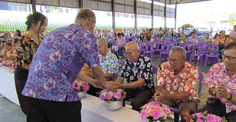 สรงน้ำพระพุทธมงคลนครนายก สรงน้ำพระสงฆ์ รดน้ำขอพรผู้สูงอายุ
