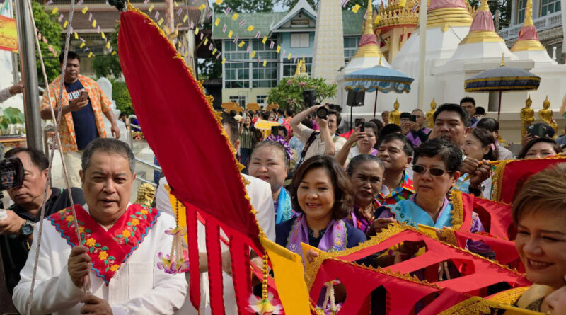 ผู้ว่าฯ ปทุมธานี นำพุทธศาสนิกชนร่วมพิธีแห่หงส์ธงตะขาบ และห่มผ้าเจดีย์ทรงรามัญคู่ ณ วัดบางหลวง พร้อมถวายข้าวแช่เปิบสำรับคาวหวาน รับศิริมงคลสงกรานต์ปี 2569