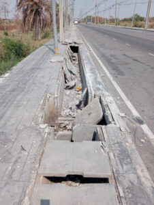 นิติกรเทศบาลบางเสาธงเตรียมแจ้งความเอาผิดคนขับรถบรรทุกมักง่ายกลับรถกลางถนนเหยียบฝาท่อระบายน้ำพังยับยาวเกือบ 10 เมตร ไร้การแสดงตัวรับผิดชอบ
