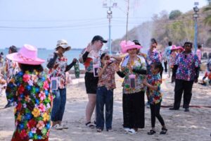 ภายในงานเต็มไปด้วยเสียงหัวเราะและดนตรีที่สนุกสนาน กิจกรรมเริ่มต้นตั้งแต่ช่วงเช้าด้วย ชาวบ้านและนักท่องเที่ยวต่างสวมเสื้อลายดอกจัดเต็มมารวมตัวกันที่ท่าเทียบเรือ ร่วมแรงร่วมใจรักษาธรรมเนียมไทยริมชายหาด มีการละเล่นพื้นบ้าน ทั้งการรำวง และการเล่นสาดน้ำที่ช่วยคลายร้อนได้อย่างดีเยี่ยม