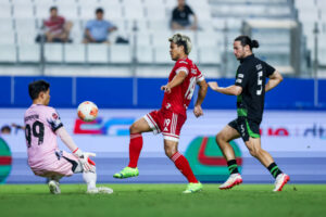 หมด 45 นาทีแรก ผู้มาเยือนอย่างราชันมังกร 10 คน นำ แข้งเทพ 0-2
