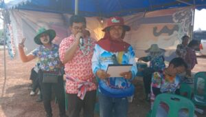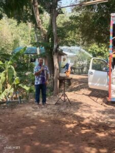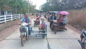 คณะกรรมการผู้ร่วมจัดงานชาวบ้านบ้านนาสะโน ม่วนชื่นกับขบวนแห่รถซาเล้งซา