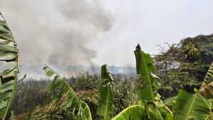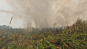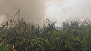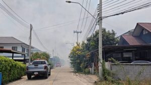 ปทุมธานี – ไฟไหม้ป่ากกนับร้อยไร่ ควันฟุ้งกระจายทำชาวบ้านผวาหนีออกจากบ้าน