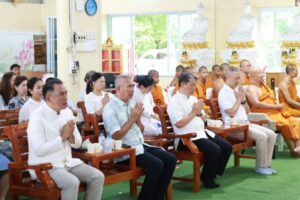 โดยมีรองผู้ว่าราชการจังหวัดจันทบุรี ผู้แทนจากส่วนราชการต่างๆ ตลอดจนประชาชนในพื้นที่เข้าร่วมงานเป็นจำนวนมาก ในการนี้ ได้รับความเมตตาจาก พระธรรมวชิรเมธี (เจ้าคุณมีชัย) เจ้าคณะภาค 1 เจ้าอาวาสวัดหงส์รัตนารามราชวรวิหาร เป็นประธานฝ่ายสงฆ์ ซึ่งได้เมตตาให้ศีลและโปรยทานแก่ผู้เข้าร่วมงานเพื่อความเป็นสิริมงคลภายในงานได้มีการมอบรางวัลการประกวดก่อพระเจดีย์ทราย ซึ่งมอบรางวัลให้แก่ทีมผู้ชนะการประกวดจำนวน 5 รางวัล นอกจากนี้ ยังได้มีการมอบรางวัลให้แก่ผู้เข้าร่วมกิจกรรมก่อพระเจดีย์ทรายทุกคน เพื่อเป็นการยกย่องในความตั้งใจและเป็นขวัญกำลังใจในการร่วมกันอนุรักษ์ประเพณีอันดีงามของท้องถิ่น ทั้งนี้ ประเพณีการก่อเจดีย์ทราย ถือเป็นคติความเชื่อที่ปฏิบัติสืบทอดกันมาอย่างยาวนาน โดยเปรียบเสมือนการสร้างพระเจดีย์ หรือ “วาลุกเจดีย์” เพื่อถวายเป็นพุทธบูชา ธรรมบูชา และสังฆบูชา ซึ่งเชื่อกันว่าอานิสงส์แห่งบุญนี้จะส่งผลให้ชีวิตมีความร่มเย็นเป็นสุข ปราศจากโรคภัยไข้เจ็บ และมีความสุขตลอดทั้งปี นอกเหนือจากคุณค่าทางจิตใจแล้ว กิจกรรมดังกล่าวยังเป็นกุศโลบายอันทรงคุณค่าที่ช่วยรวบรวมชาวบ้านในชุมชนให้มาร่วมแรงร่วมใจกันขนทรายและตกแต่งเจดีย์ทรายด้วยตุงและดอกไม้นานาพรรณ อันเป็นการตอกย้ำถึงความสมัครสมานสามัคคี และเป็นการอนุรักษ์มรดกทางวัฒนธรรมของไทยให้คงอยู่สืบไป