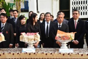 เข้าร่วมเป็นเกียรติ พร้อมด้วยข้าราชการฝ่ายตุลาการศาลยุติธรรมและเจ้าหน้าที่ ร่วมกันตักบาตรข้าวสารอาหารแห้งแด่พระสงฆ์ เพื่อแสดงความรำลึกในพระมหากรุณาธิคุณของพระบาทสมเด็จพระจุลจอมเกล้าเจ้าอยู่หัว ที่มีต่อวงการศาลยุติธรรม