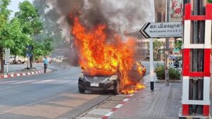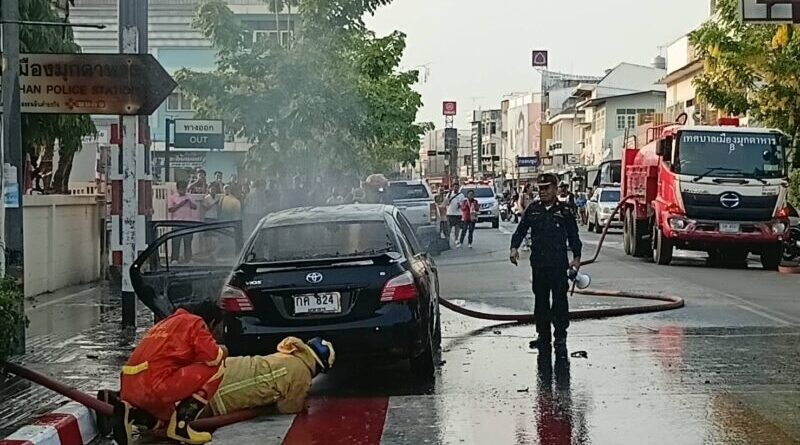 มุกดาหาร – เกิดเหตุเพลิงลุกไหม้รถเก๋งวอดทั้งคัน หวิดดับยกครัวอดีตข้าราชการครู ส่วนเจ้าหน้าที่ตำรวจเร่งตรวจสอบหาสาเหตุ
