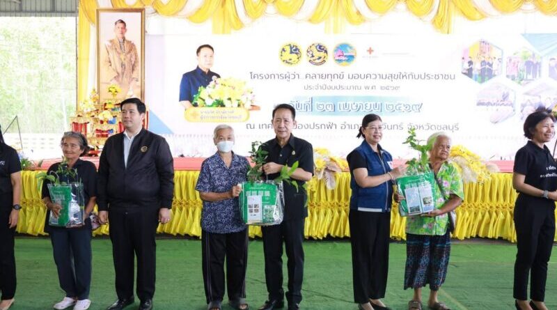 นายนริศ นิรามัยวงศ์ ผู้ว่าราชการจังหวัดชลบุรี เป็นประธานเปิดโครงการ “ผู้ว่าฯ คลายทุกข์ มอบความสุขให้ประชาชน” ประจำปีงบประมาณ 2569 ณ เทศบาลเมืองปรกฟ้า อำเภอเกาะจันทร์ จังหวัดชลบุรี โดยมีนางสุพิณญา นิรามัยวงศ์ นายกเหล่ากาชาดจังหวัดชลบุรี พร้อมด้วยนายอิสรา เจริญชาศรี รองผู้ว่าราชการจังหวัดชลบุรี นางสาวขวัญเรือน ศรีจันทร์ ปลัดจังหวัดชลบุรี นายกมลชนก กาญจนากาศ นายอำเภอเกาะจันทร์ หัวหน้าส่วนราชการ คณะกรรมการเหล่ากาชาดจังหวัดชลบุรี ผู้นำท้องถิ่น และประชาชน เข้าร่วมงานเป็นจำนวนมาก