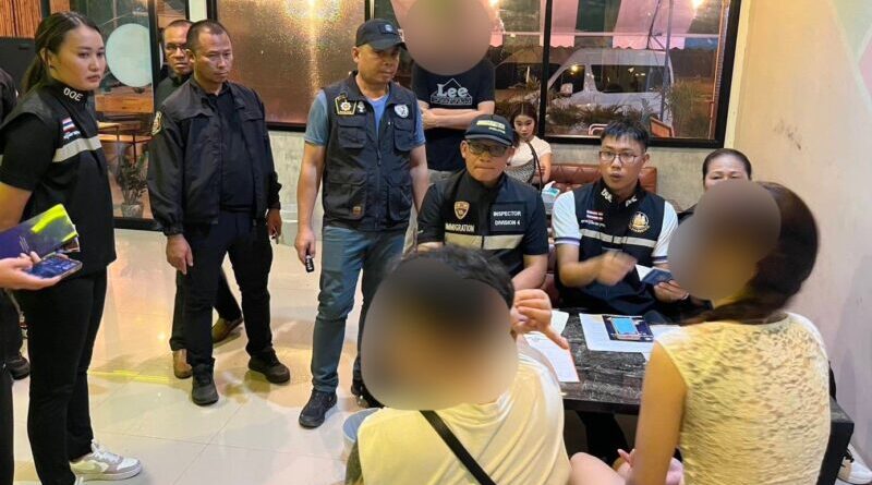 จากการเข้าตรวจสอบ พบหญิงต่างด้าวกำลังให้บริการลูกค้าในลักษณะนั่งดริ้งค์ภายในห้องคาราโอเกะ และทำหน้าที่รับชำระค่าอาหารและเครื่องดื่ม เจ้าหน้าที่จึงแสดงตัวและขอตรวจสอบเอกสารตามกฎหมาย
