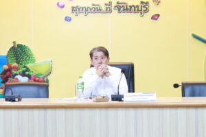 นายมนต์สิทธิ์ ไพศาลธนวัฒน์ ผู้ว่าราชการจังหวัดจันทบุรี ประชุมหารือร่วมกับหน่วยงานสังกัดกระทรวงเกษตรและสหกรณ์ กระทรวงพาณิชย์ ภาคเอกชน และผู้แทนเกษตรกร เพื่อวางแนวทางบริหารจัดการห่วงโซ่อุปทานผลไม้และมาตรการป้องกันทุเรียนอ่อนออกสู่ตลาด เผยตัวเลขส่งออกโตต่อเนื่อง เตรียมรับผลผลิตระลอกใหญ่ปัจจุบันผลผลิตทุเรียนในจังหวัดจันทบุรีออกสู่ตลาดแล้วประมาณร้อยละ 25 โดยภาพรวมการส่งออกผลไม้ไทยในภาคตะวันออก ซึ่งมีจันทบุรีเป็นศูนย์กลางหลัก ยังคงเติบโตที่ร้อยละ 1.16 คิดเป็นมูลค่าทางเศรษฐกิจกว่า 300,000 ล้านบาท ทั้งนี้ จังหวัดเตรียมรับมือผลผลิตระลอกใหญ่ที่จะออกสู่ตลาดในช่วงกลางเดือนพฤษภาคมนี้ ซึ่งคาดว่าจะมีปริมาณสูงถึง 318,191 ตัน คุมเข้มมาตรการ “ต้นน้ำ-กลางน้ำ” สกัดทุเรียนตกเกณฑ์