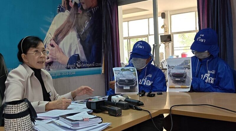 รายที่ 2 จ.สระบุรีด้านน.ส.บี (นามสมมุติ) อายุ 41 ปี ชาวจ.พระนครศรีอยุธยา กล่าวว่า ตนผ่อนรถกระบะอีซูซุ ดีแม็ก ทะเบียน ขน 4052 จ.อุดรธานี อยู่กับไฟแนนซ์ เดือนละ 13,000 บาท โดยผ่อนมา 3 ปี และยังเหลือผ่อนอีก 4 ปี ซึ่งตนมีอาชีพค้าขายผลไม้ จะใช้รถขนผลไม้จากภาคเหนือมาขายที่ตลาดสี่มุมเมือง ก่อนหน้านี้ตนได้จำนำรถไว้ 100,000 บาท เพราะเศรษฐกิจไม่ดีหมุนเงินไม่ทัน และทางคนที่รับจำนำรายแรกต้องการเงินคืนด่วน ตนได้ไปเจอ เพจเฟซบุ๊กชื่อ Hiatn40 รับจำนำรถยนต์รับไถ่ถอนรถติดจำนำออนไลน์ “รับจำนำรถทุกชนิด รับเปลี่ยนย้ายที่จอด รับไถ่ถอนรถไฟแนนซ์ยึดไปแล้ว” จึงติดต่อไปเพื่อกู้เงินมาไถ่ถอนและรับจำนำรถต่อก่อนจะทำสัญญากู้เงิน 150,000 บาท โดยส่งทางไลน์ และนัดรับเงินส่งรถกันในช่วงบ่ายวันที่ 19 เม.ย.69 ที่หน้าเซเว่น สาขาหน้าพระลาน จ.สระบุรี วันนั้นมีผู้ชายขับรถกระบะโตโยต้า วีโว่ สีดำมา ซึ่งเป็นรถของ น.ส.บี อ้างว่าชื่อ “เฮียต้น” และมีผู้หญิงนั่งมาด้วย ทางเฮียต้นได้มอบเงินให้ 100,000 บาท และตนได้ส่งเงินให้คนที่จำนำรถคนแรกไปก่อนเพื่อนไถ่ถอน จากนั้นเฮียต้นบอกว่า ให้ขับรถตามกันไปนัดเจอที่รังสิตเดี๋ยวจะให้เงินที่เหลืออีก 50,000 บาท ตนได้ขับรถตามเฮียต้นและผู้หญิงที่ขับรถกระบะของตนจากสระบุรีเพื่อมุ่งหน้ามาที่รังสิต แต่ระหว่างทางเกิดคลาดกันตนจึงโทรศัพท์หาเฮียต้นก็บ่ายเบี่ยงอ้างว่าไม่สบายต้องไปโรงพยาบาลและหมอให้แอดมิดวันนี้ไปไม่ได้แล้ว ตนเห็นผิดสังเกตไม่น่าไว้วางใจแล้ว จึงรีบติดต่อญาติหาเงิน 100,000 บาทแล้วโทรนัดกับเฮียต้นเพื่อจะไปไถ่เอารถคืน ทีแรกเฮียต้นก็รับปากจะมาเจอกันที่รังสิตในวันที่ 20 เม.ย. แต่ตนไปรอทั้งวันก็ไม่มีวี่แววและไม่สามารถติดต่อกับเฮียต้นได้เลยจึงรู้ตัวว่าถูกหลอก จากนั้นตนได้ตรวจสอบทะเบียนรถกระบะที่เฮียต้นขับมาเจอ ปรากฎว่ามีชื่อเจ้าของอยู่ในพื้นที่สภ.คลองห้า จึงเดินทางไปพบตำรวจสภ.คลองห้า ในวันที่ 22 เม.ย.69 และได้พบกับน.ส.เอ ที่มาแจ้งความ จึงมารู้ภายหลังว่าเพจที่ติดต่อทางเพจเฟซบุ๊กนั้นเป็นเพจเดียวกับของน.ส.เอ และพฤติกรรมของเฮียต้นหรือคนรับจำนำรถเป็นแบบเดียวกัน ทั้งสองจึงชักชวนกันมาร้องขอความช่วยเหลือจากมูลนิธิปวีณาฯ น.ส.เอ และน.ส.บี กล่าวว่า ตนทั้งสองตั้งใจทำมาหากินด้วยน้ำพักน้ำแรงเก็บเงินสู้ชีวิต แต่กลับมาเจอมิจฉาชีพหลอกเชิดเอารถหายไป ไม่รู้ว่ารถของตนทั้งสองจะถูกนำไปชำแหละหรือถูกส่งขายไปประเทศเพื่อนบ้านแล้วหรือไม่ ขณะที่ตนทั้งสองยังต้องก้มหน้าก้มตาหาเงินใช้หนี้ไฟแนนซ์ แต่ไม่ได้ใช้รถเพราะมิจฉาชีพหลอกเชิดเอารถไป 