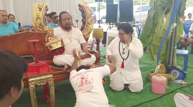 อ่างทอง ส่องตัวเลขน้ำตาเทียนในโอ่งงานพิธีไหว้ครูอาจารย์สรณ์ ท่ามกลางบรรยากาศอัศจรรย์ เข้มขลังด้วยมนต์และพลังเวทย์ มีลูกศิษย์ของขึ้นองค์ลงซึ่งเป็นความเชื่อส่วนบุคคล
