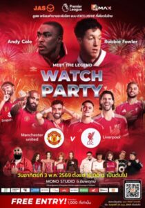 แฟนบอลชาวไทยเตรียมตัวให้พร้อมกับครั้งแรกที่ 2 ตำนานแดงเดือดจะปรากฏตัวพร้อมกันในประเทศไทย!!! บริษัท จัสมิน อินเตอร์เนชั่นแนล จำกัด (มหาชน) หรือ JAS ผู้ถือลิขสิทธิ์ฟุตบอลพรีเมียร์ลีกอังกฤษ และเอมิเรตส์เอฟเอคัพอย่างเป็นทางการ ร่วมกับ Monomax แพลตฟอร์มหลักในการถ่ายทอดสดฟุตบอลพรีเมียร์ลีกและเอมิเรตส์เอฟเอคัพตลอด 6 ฤดูกาล ชวนแฟนผีและเด็กหงส์ร่วมสร้างประสบการณ์ลูกหนังสุดเอ็กซ์คลูซีฟครั้งใหญ่ในไทยและรวมพลังส่งเสียงเชียร์บิ๊กแมตช์แดงเดือด “MONOMAX WATCH PARTY: RED MATCH” ระหว่าง แมนเชสเตอร์ ยูไนเต็ด พบ ลิเวอร์พูล พร้อมกระทบไหล่ 2 ตำนานดาวยิงระดับโลก บินตรงร่วมเชียร์ติดขอบจอ ในวันอาทิตย์ที่ 3 พฤษภาคม 2569 ตั้งแต่เวลา 16.00 น. เป็นต้นไป ณ Mono Studio