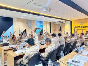 ชมภาพบรรยากาศการประชุมและฟังเสียงสัมภาษณ์สด: นายปิ่นพงษ์ คงชนะ ผู้อำนวยการศูนย์ปฏิบัติการฝนหลวงภาคใต้ตอนบน