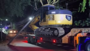 เมื่อเวลา 18.30 น. ของวันที่ 27 เม.ย.69 ศูนย์วิทยุ สภ.นาจอมเทียน อ.สัตหีบ จ.ชลบุรี ได้รับแจ้งเหตุรถบรรทุกพ่วง 18 ล้อ บรรทุกรถแม็คโครเกี่ยวสายไฟ จนทำให้เสาไฟฟ้าล้ม ภายในซอยถนนโรงสี บ้านหนองจับเต่า ต.นาจอมเทียน หลังรับแจ้ง เจ้าหน้าที่ตำรวจสายตรวจจึงรุดไปตรวจสอบ พร้อมประสานเจ้าหน้าที่กิจการ สวัสดิการสัมปทาน กองทัพเรือ เข้าตรวจสอบที่เกิดเหตุ