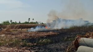 ที่เกิดเหตุอยู่ใกล้วัดบัวผัน เป็นที่รกร้าง ล้อมรอบด้วยป่าหญ้า และต้นกฐิน พบเพลิงไหม้รถบรรทุก12 ล้อภายในบรรจุขี้เลื่อน ก่อนลุกลามไปยัง รถบรรทุก10 ล้อที่บรรทุกไม้ และ รถบรรทุก6 ล้อ อีก1คัน ที่จอดใกล้เคียง แล้วลุกลามป่าหญ้าที่อยู่ติดกัน เจ้าหน้าที่ระดมใช้น้ำฉีดสกัดใช้เวลา 30 นาาที เพลิงจึงสงบ รถบรรทุกเสียหายหมดทั้ง 3 คัน