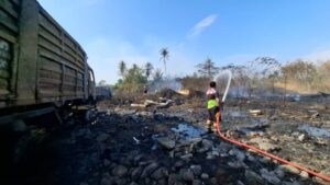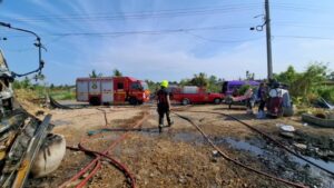ร.ต.อ.สุรเชษฐ์ ขันทอง รอง สว.(สอบสวน)สน.ท่าข้าม รับแจ้งเหตุ เพลิงไหม้รถบรรทุก ในซอยประชาอุทิศ 76 แขวงท่าข้าม เขตบางขุนเทียน กรุง จึงประสานสถานีดับเพลิงและกู้ภัยบางขุนเทียนร่วม ตรวจสอบ