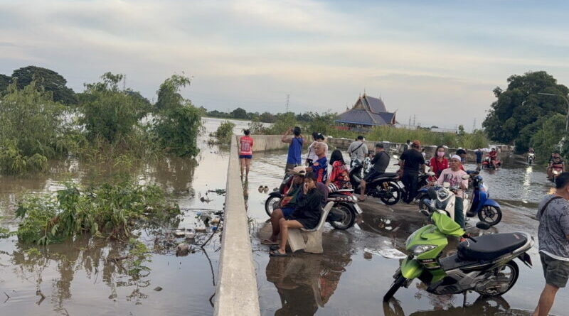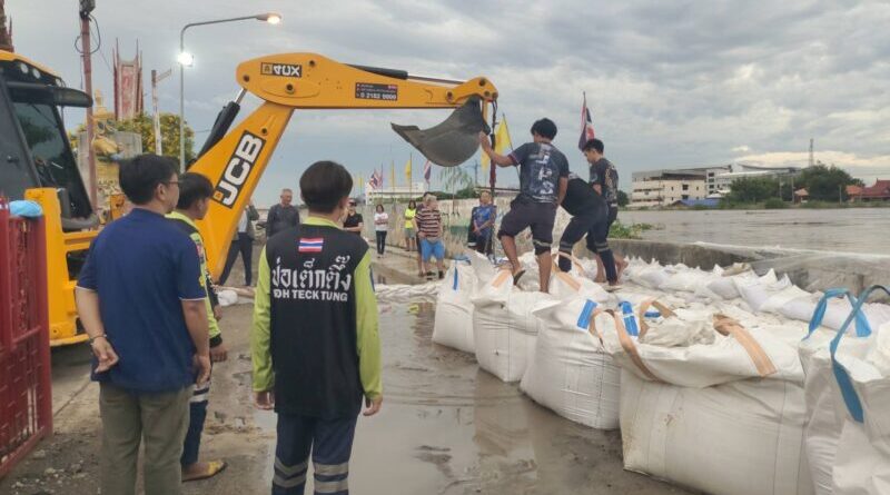 อ่างทอง คันกั้นน้ำหมู่5โผงเผงพังทลายน้ำไหลเข้าหมู่บ้านขนของหนีขึ้นไว้บนถนน ด้านผู้ใหญ่บ้านพร้อมกำลังผู้ต้องขังจากเรือนจำ ตั้งเต้นท์บนถนนให้ชาวบ้านอยู่อาศัย สวนทางด้านนายก อบต. เร่งวางบิ๊กแบ็คต้านป้องกันน้ำ